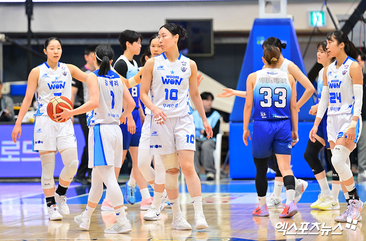 (엑스포츠뉴스 인천, 김한준 기자) 12일 오후 인천광역시 중구 도원체육관에서 열린 'BNK 금융 2025-2026 여자프로농구' 신한은행과 우리은행의 경기, 우리은행이 신한은행에 70:55로 승리했다.