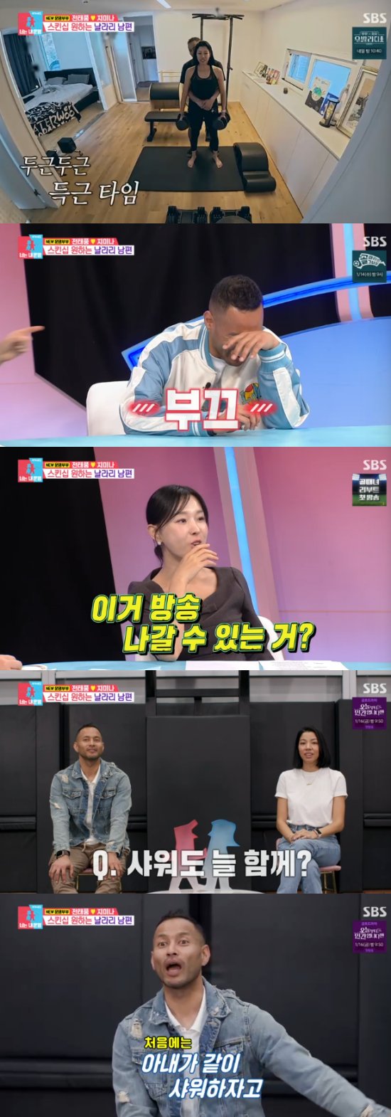지미나는 라이딩을 끝낸 후 집에 돌아와서 운동을 시작했다. 전태풍은 아내의 운동 자세를 봐준다는 핑계를 대면서 엉덩이와 허리 등을 계속해서 터치했다. 전태풍은 영상 속 자신의 모습을 보면서 "변태 같다"면서 고개를 들지 못할 정도로 민망해했고, 이지혜 역시 "이거 방송에 나갈 수 있냐"면서 놀라기도.
