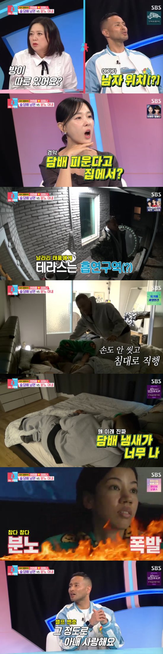 이날 전태풍은 절친들과 술을 마시다가 밤 12시가 넘어서야 집에 들어갔다. 그리고 집에 들어가자마자 하는 일은 테라스로 나가서 담배를 피우는 것이었다.