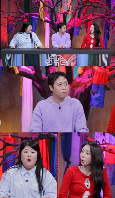 이국주는 “만약 돈, 연애 중에 하나만 가질 수 있다면?”이라고 되묻고 은지는 “연애!”라고 바로 대답을 한다. 이어 무속인은 바로 은지의 연애운을 봐준다. 무속인은 “위험한 연애를 할 수가 있다. 그거만 피하면 좋을 거 같다”라고 말한다. 또 다른 무속인도 “결혼 일찍 하려고 마음먹지 말라”라고 강조한다.