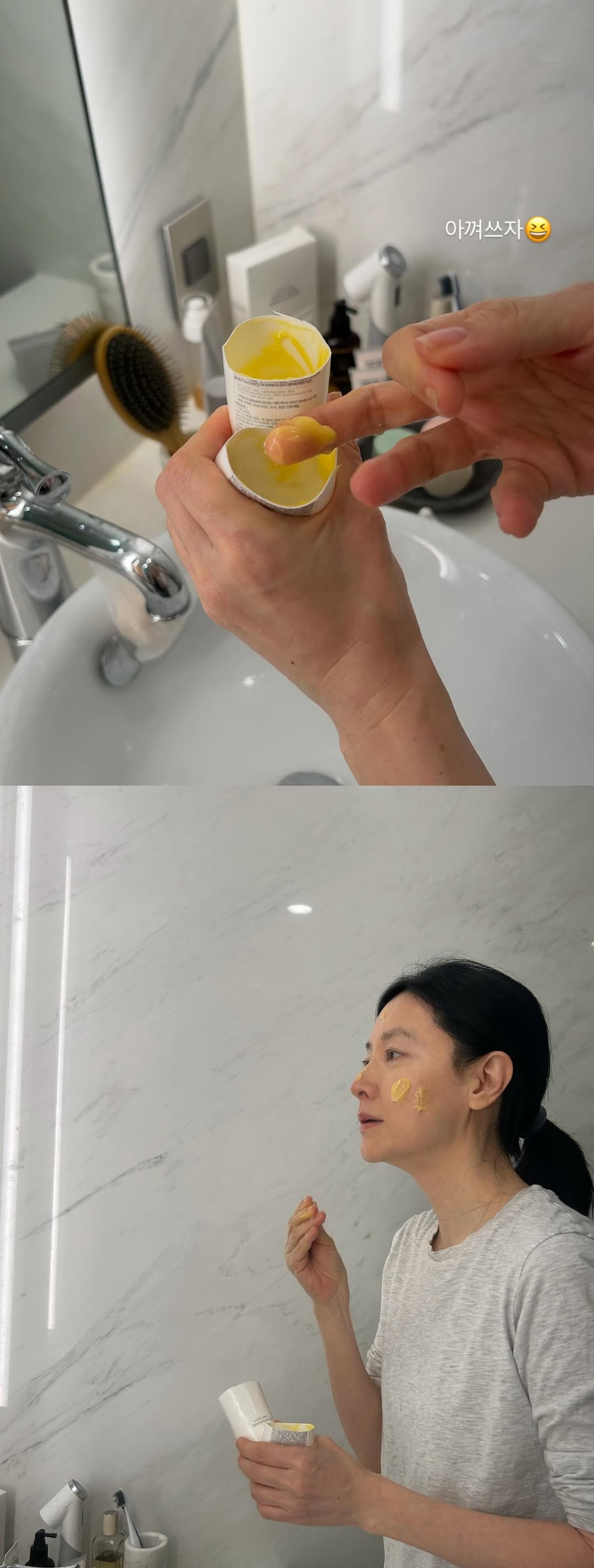 '재산 2조 남편♥' 이영애, 대리석 화장실서 화장품 '싹둑'…"오래 쌓아온 단계" [★해시태그]