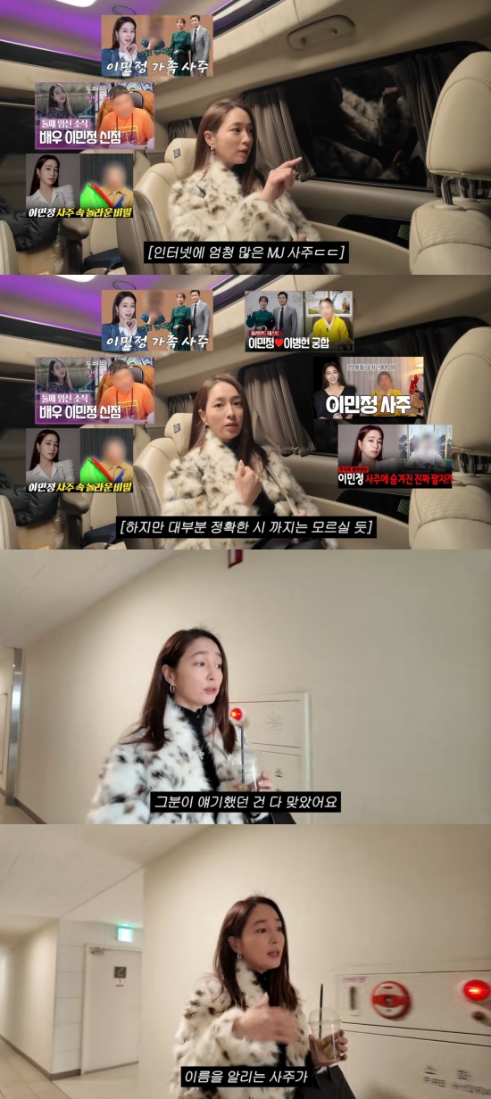 지난해 연말 콘텐츠를 촬영했다는 이민정은 "기독교인이라 사주를 보지 않지만 사주는 통계학이라고 하더라. 인터넷에 연예인 사주가 많이 나와있는데 제 시도 잘 모르지 않나. 틀린 것도 많았다. 그래서 제가 직접 보면 어떨까 싶어 와봤다. 제가 궁금한 건 일적인 부분이다. 앞으로 어떤 것들 위주로 하면 좋을까랑 건강 같은 거, 해외로 나가는 역마살 같은 것들이 궁금하다"고 밝혔다.