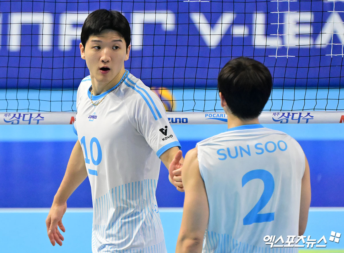 경기 전 취재진과 만난 헤난 감독은 "정지석은 워낙 공격력이 좋은 선수인 만큼 정지석을 대체할 수 있는 자원을 찾는 게 쉽지 않다"며 "정지석, 임재영 모두 빠른 회복세를 보이고 있다. 임재영의 경우 수술을 진행했기 때문에 좀 더 시간이 필요하고, 정지석은 우리의 계획 안에서 잘 회복하고 있다"고 밝혔다.