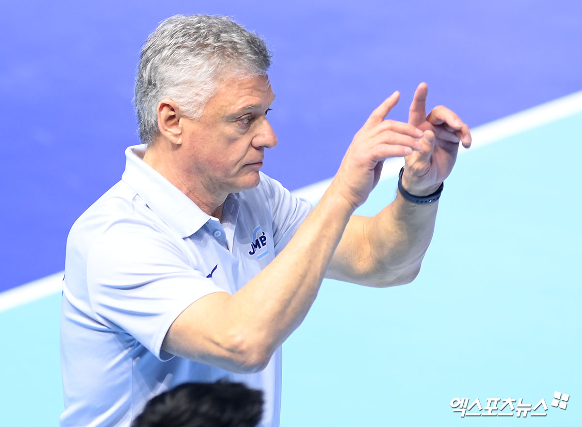 (엑스포츠뉴스 인천, 고아라 기자) 13일 오후 인천 계양체육관에서 열린 '진에어 2025-2026 V-리그' 대한항공과 OK저축은행의 경기, 대한항공 헤난 감독이 비디오 판독을 요청하고 있다.