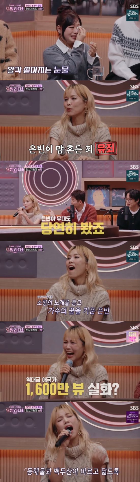 최은빈은 자신의 롤모델이 출연하다는 말에 "눈물이 날 것 같다"면서 만나기도 전에 눈물을 글썽였다. 그리고 등장한 주인공은 바로 '월클 보컬' 소향이었다. 최은빈은 "실제로는 처음 뵙는다"면서 연신 눈물을 닦아냈다.