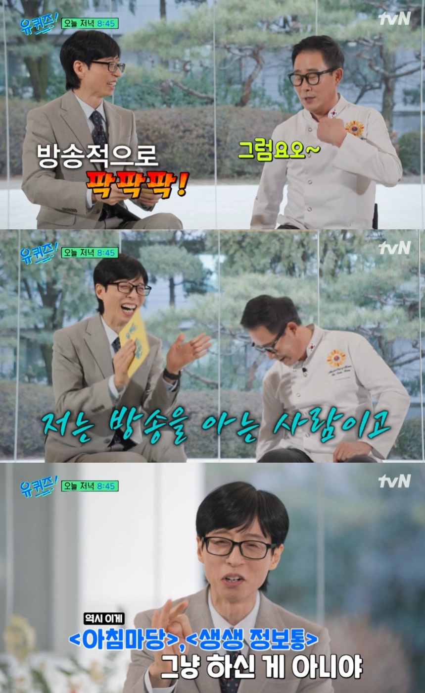 유재석은 그의 방송인 면모에 "'아침마당', '생생정보통' 그냥 하신 게 아니다. 서사가 다 있으시다"라며 감탄을 표했다.