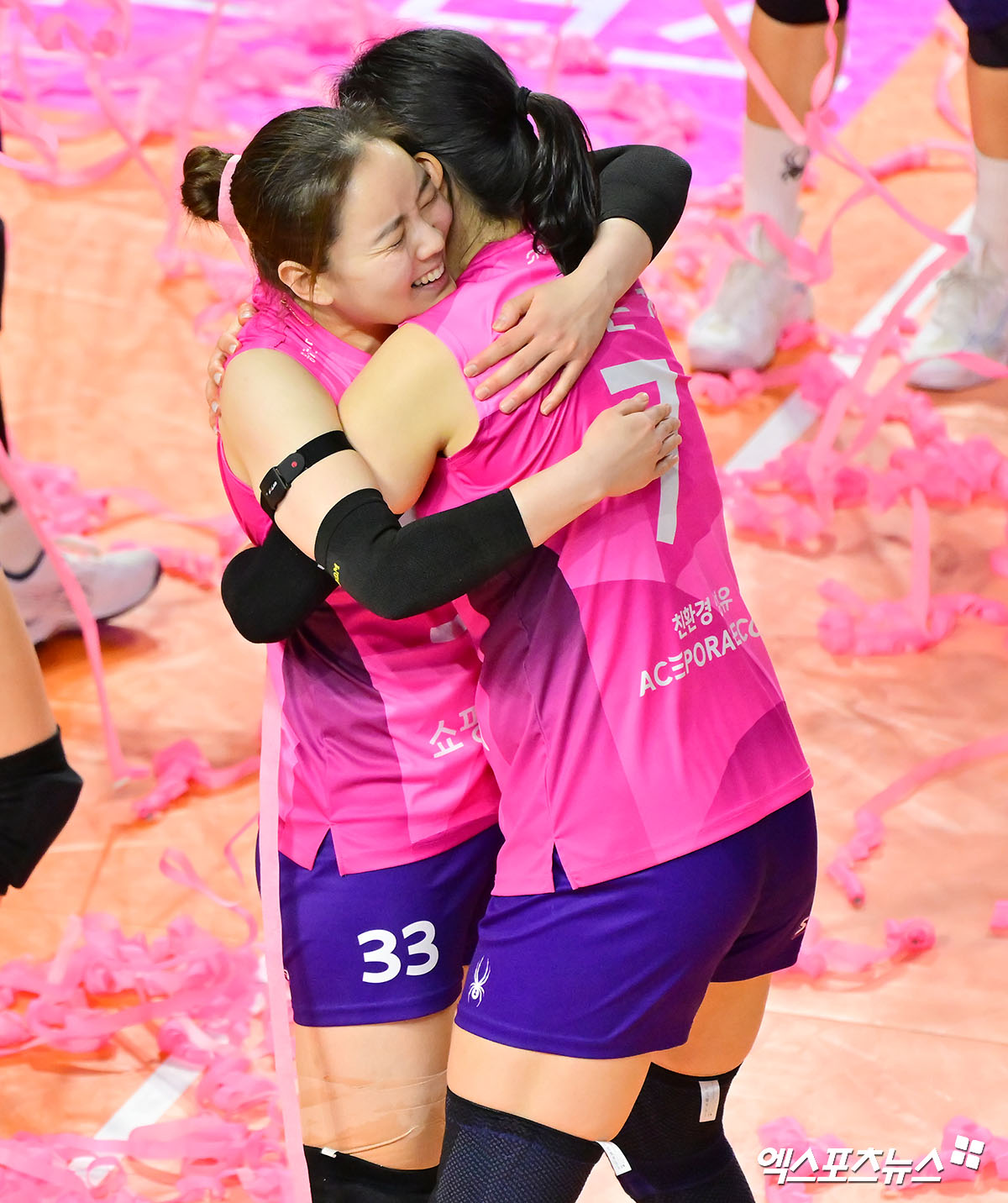 이날 경기에서 승리한 흥국생명 이나연이 기뻐하고 있다.