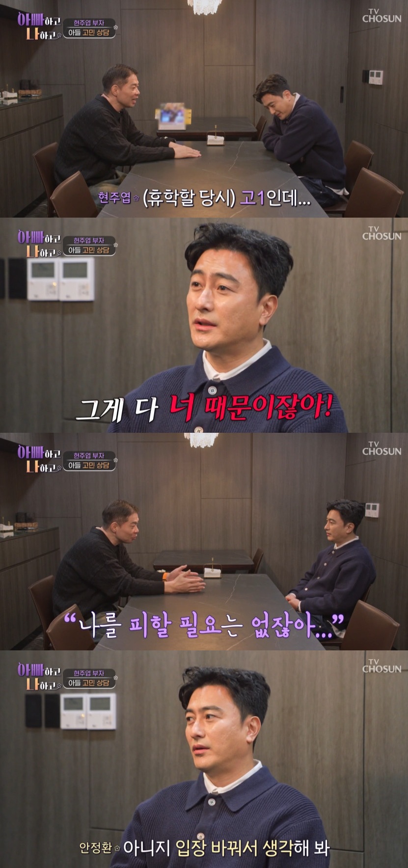 14일 공개된 TV조선 '아빠하고 나하고'에서는 안정환을 만나 아들에 대한 고민을 상담하는 현주엽의 일상이 담겼다.