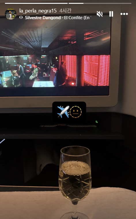 페라자는 15일 오후 3시경 자신의 인스타그램을 통해 비행기에 음료 한 잔 주문하고 영화 시청 중임을 알렸다. 비행기 이모지도 같이 올렸다.