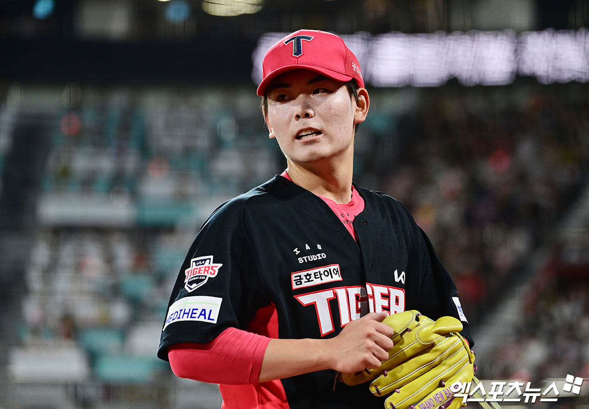 29일 오후 서울 송파구 잠실야구장에서 열린 '2025 신한 SOL Bank KBO리그' KIA 타이거즈와 LG 트윈스의 경기, 8회말 수비를 마친 KIA 성영탁이 더그아웃으로 향하고 있다. 엑스포츠뉴스 DB