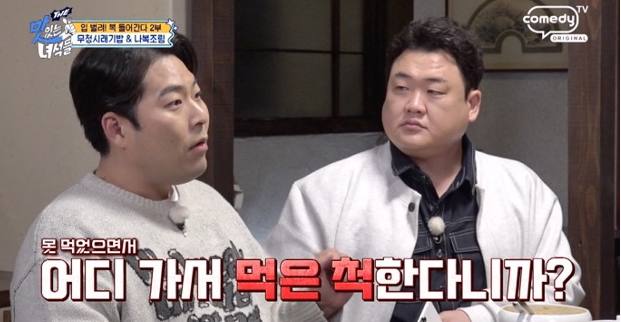 16일 방송되는 코미디TV 예능 프로그램 'THE 맛있는 녀석들'(이하 'THE 맛녀석') '입 벌려! 복 들어간다' 2부에서는 김해준의 폭로로 김준현의 먹방 진정성이 도마 위에 오르는 모습이 전파를 탄다.