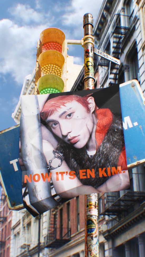 공개된 영상은 신호등에 불이 켜지며 표지판들이 요란하게 움직는 장면으로 시작되며, ‘This way was M’이라는 표지판이 화면에 등장한다. 이어 EN KIM의 사진과 함께 ‘NOW IT’S EN KIM’이라는 문구가 더해져 새로운 활동명과 방향성을 상징적으로 담아냈다.