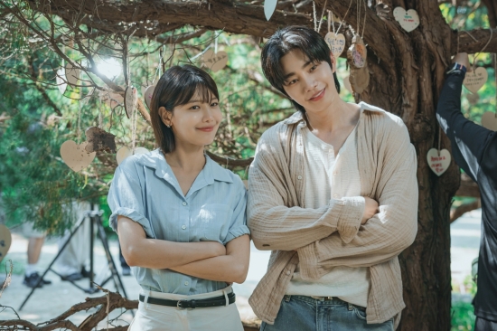 그런 가운데 ‘로맨스 케미스트리’의 정석을 완성한 최수영, 김재영의 비하인드 스틸이 공개돼 설렘을 더한다. 서로의 진심을 나눈 한밤의 데이트는 애틋한 설렘을 자극한 명장면. 공개된 비하인드 역시 본 방송만큼이나 꿀이 뚝뚝 떨어지는 달달한 분위기로 심박수를 높인다. 바라보기만 해도 미소가 번지는 ‘비주얼 케미스트리’를 자랑하듯 셀카를 찍는 최수영과 김재영의 모습도 포착됐다. 자연스럽게 현장을 이끄는 최수영과 수줍게 호흡을 맞추는 김재영의 모습은 극 중 도라익 곁을 지키는 맹세나를 떠올리게 하며 두 사람의 케미스트리를 더욱 실감케 한다.