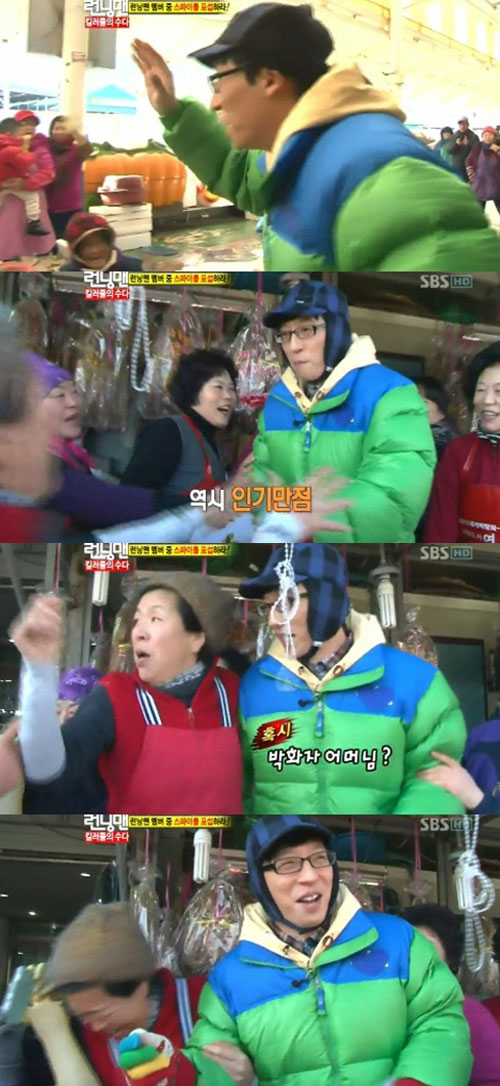 이날 미션 수행을 위해 여수 시장에서 박대를 파는 박화자 어머니를 찾아 나선 유재석은 많은 상인들이 그를 반기며 몰려도 웃음을 잃지 않는 모습을 보였다.