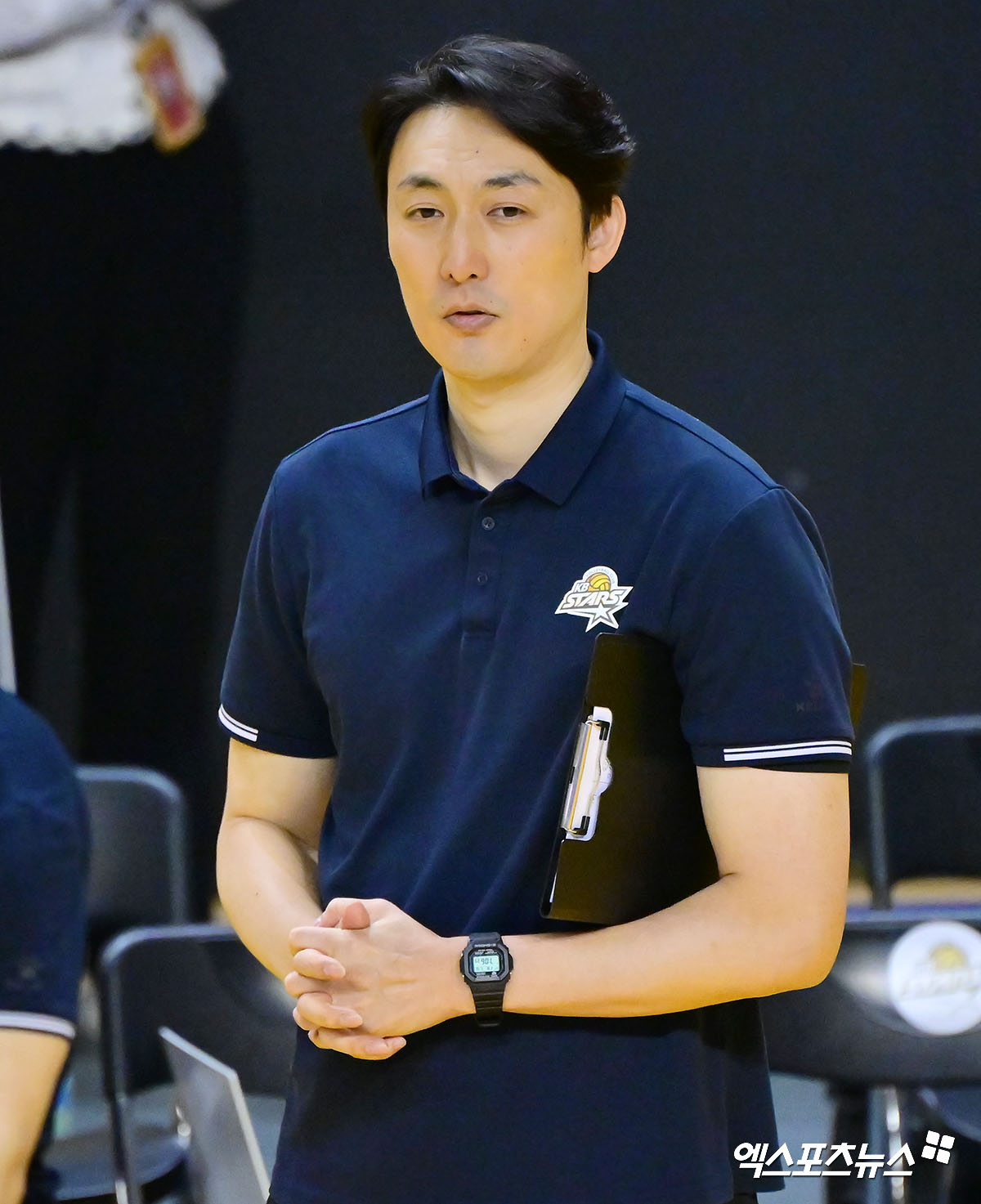 (엑스포츠뉴스 의정부, 김한준 기자) 16일 오후 경기도 의정부실내체육관에서 열린 '진에어 2025-2026 V-리그' KB손해보험과 대한항공의 경기, KB손해보험 하현용 감독대행이 경기를 지켜보고 있다.