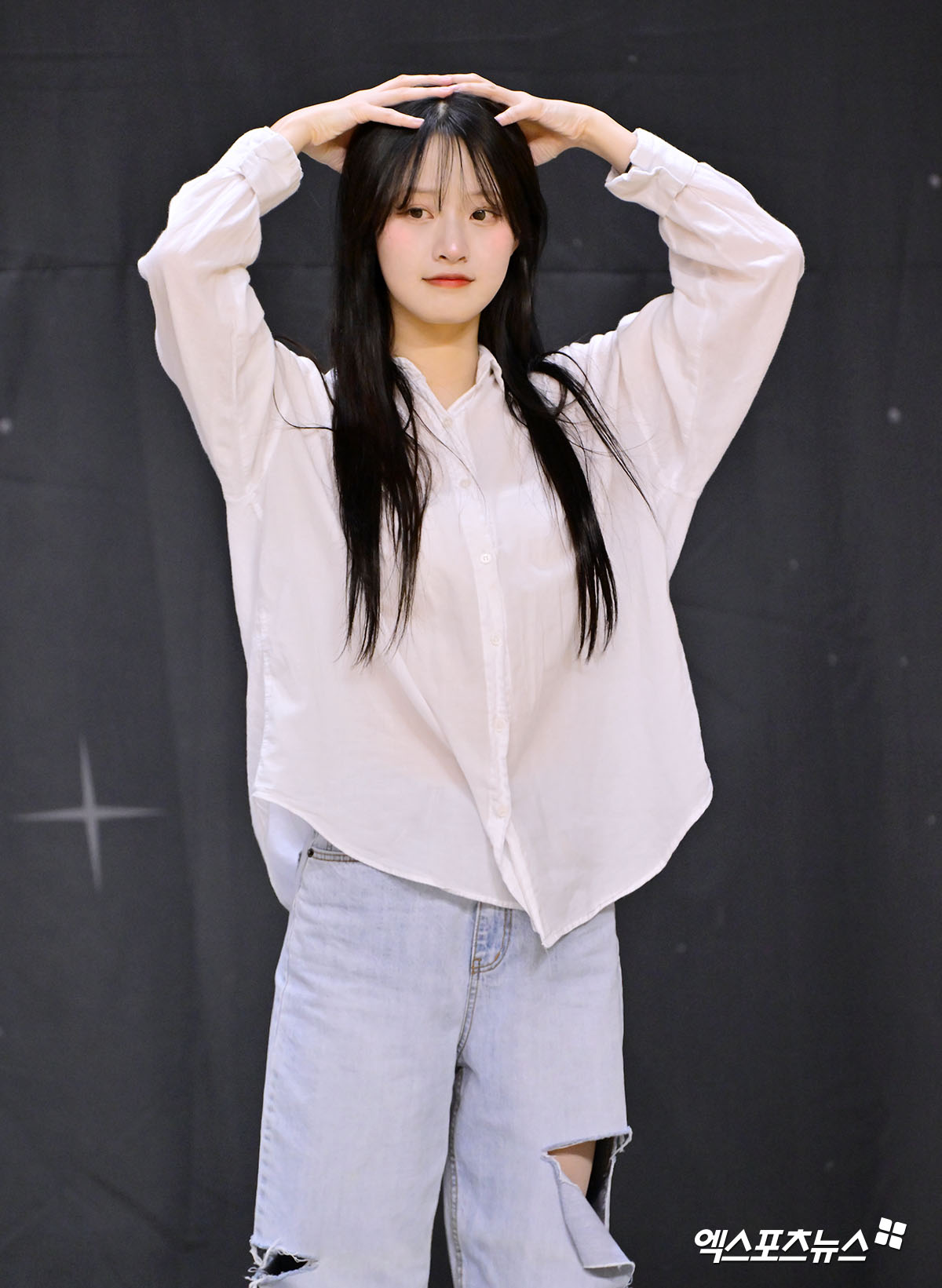 (엑스포츠뉴스 의정부, 김한준 기자) 16일 오후 경기도 의정부실내체육관에서 열린 '진에어 2025-2026 V-리그' KB손해보험과 대한항공의 경기, 정설아 치어리더가 리허설에 임하고 있다.