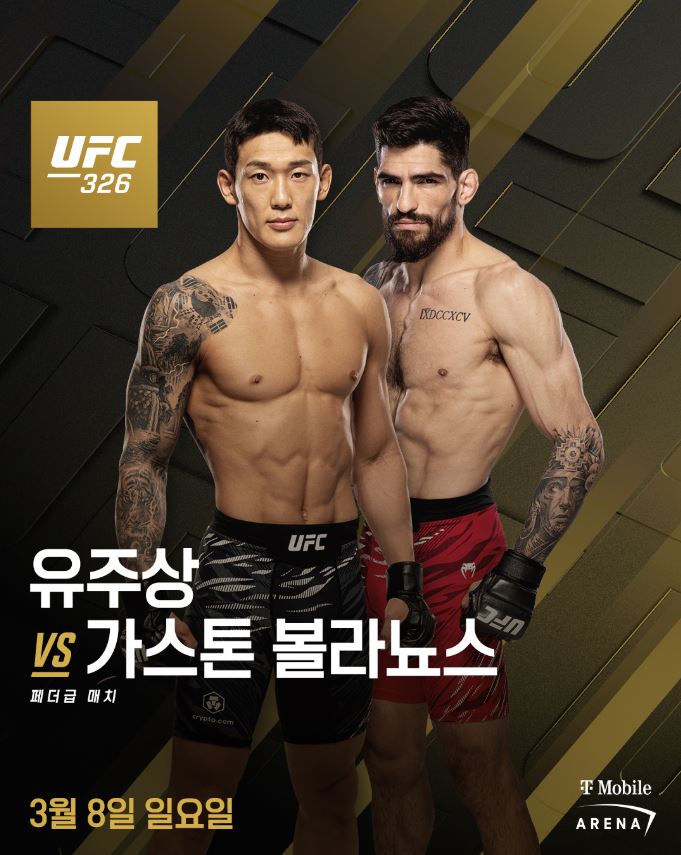 '좀비 주니어' 유주상이 커리어 첫 패배 이후 재도약에 나서는 가운데, 맥스 할로웨이와 찰스 올리베이라가 맞붙는 BMF 타이틀전이 메인 이벤트로 펼쳐지는 'UFC 326: 할로웨이 vs 올리베이라 2'가 미국 네바다주 라스베이거스 티모바일 아레나에서 열린다.