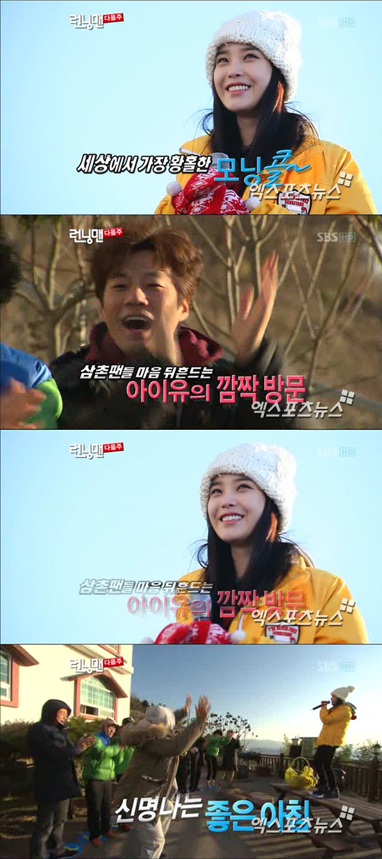 ▲아이유 모닝콜에 '런닝맨' 삼촌팬들 화색 ⓒ SBS 방송화면 캡처