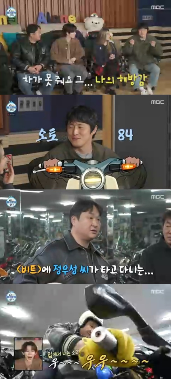기안84는 "차는 나의 해방감을 못 준다"면서 즉석에서 바이크를 타는 동작을 선보였다. 조이는 바이크에 타고 있는 줄 알았다며 웃었다.