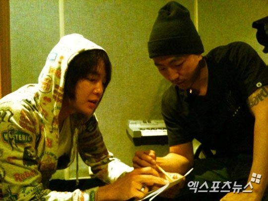 공개된 사진 속 장근석과 주석은 서로 머리를 맞대고 진지하게 상의하는 모습으로 아직 미발표곡이지만 주석이 만든 곡에 장근석이 피처링으로 참여하며 끈끈한 의리를 자랑하고 있다는 후문이다.