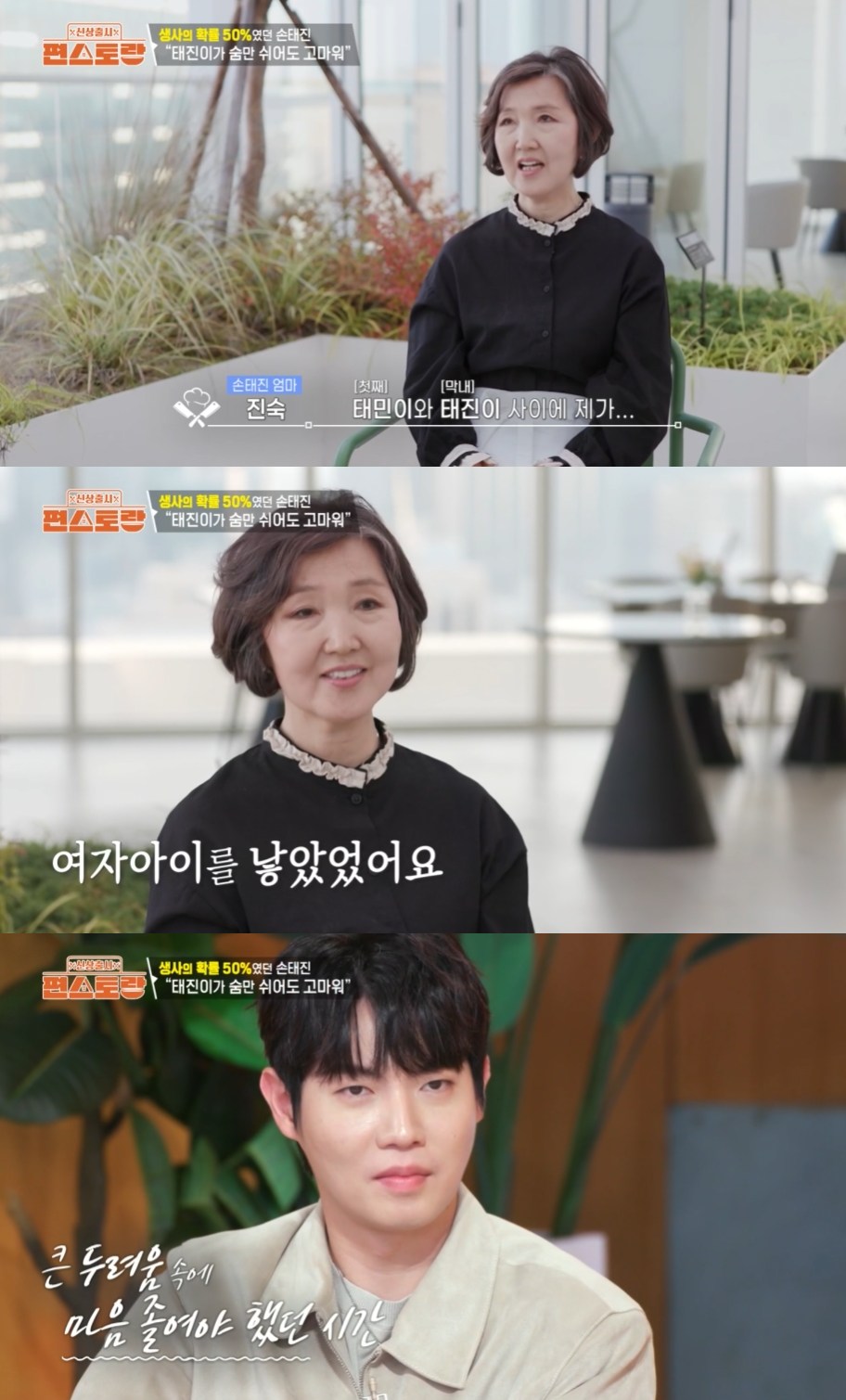 뒤이어 어머니는 "첫째와 막내 사이에 여자아이를 낳았었다"고 고백했다. 그러나 딸아이가 태어난 지 3일째 되던 날 세상을 떠났다고 털어놔 안타까움을 자아냈다. 그 이후 태어난 아이가 손태진이었던 것.