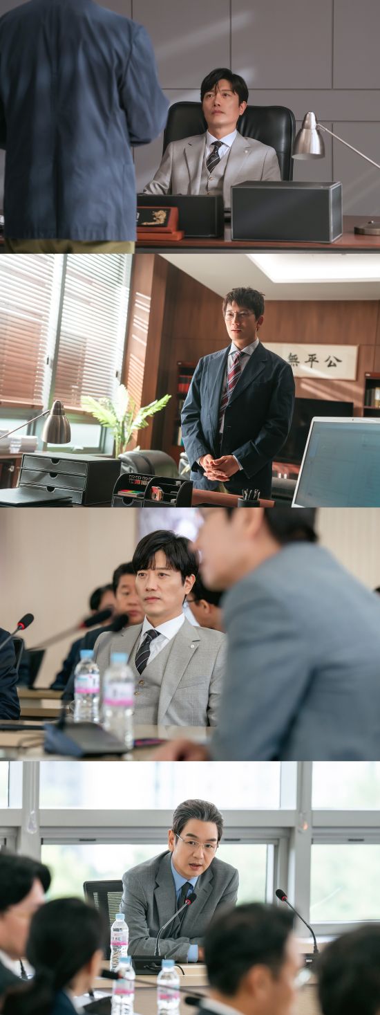 상석에 앉은 백이석은 보는 것만으로도 카리스마를 뿜어내며 회의실 분위기를 압도하고 있으나 강신진은 그런 백이석이 가소롭다는 듯 비릿한 웃음을 띠며 은근한 기싸움을 펼친다. 정반대의 행보를 걷는 두 판사 강신진과 백이석의 아슬아슬한 한집살이는 서울지법에 몰아칠 폭풍을 암시하며 흥미진진한 전개를 기대케 한다.