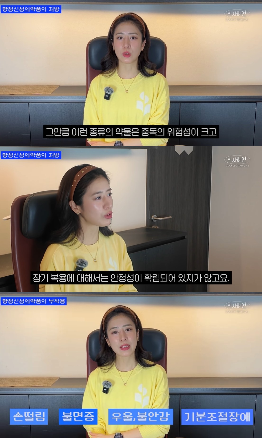 민혜연은 "그만큼 이런 종류의 약들은 중독 위험도 크기 때문에 반드시 병원에서 의사에게 제대로 된 진료를 받고, 3개월 이내 단기 복용을 하셔야 한다"고 다시금 목소리를 높였다.