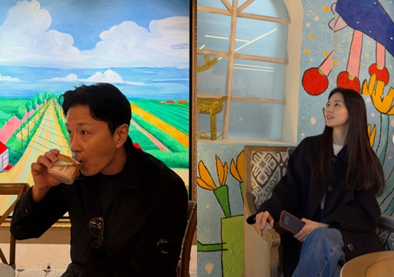 공개된 사진에는 커피를 마시며 여유를 즐기는 진태현과, 벽화 앞에서 환한 미소로 시선을 두고 있는 박시은의 모습이 담겼다. 아기자기한 감성의 공간 속에서 두 사람의 소소하지만 평온한 일상이 고스란히 전해진다.