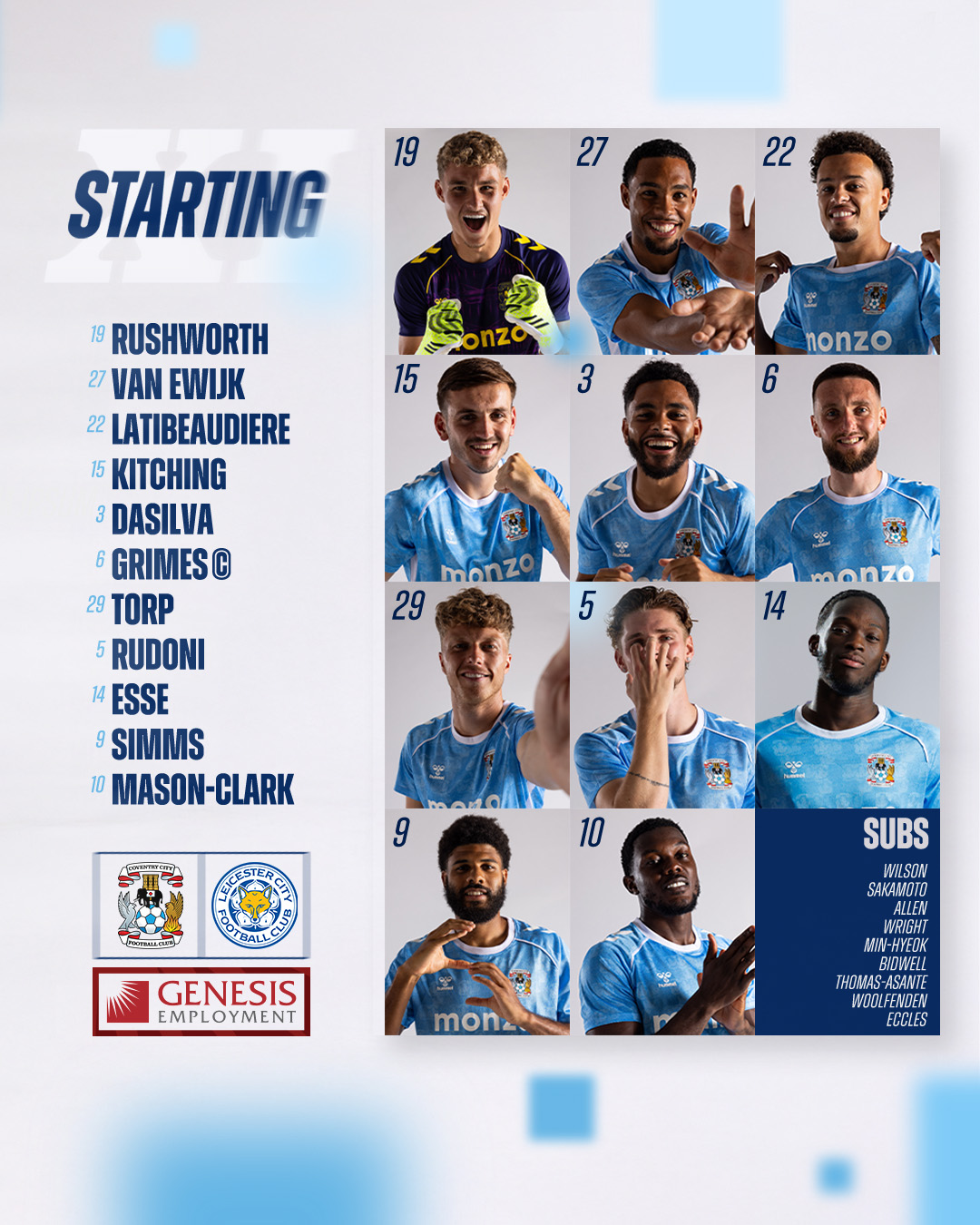이날 프랭크 램파드 감독은 4-2-3-1 포메이션을 꺼내들었다. 칼 러시워스가 골문을 지키고, 제이 다실바, 리암 키칭, 조엘 라티보디레, 밀란 판 에바이크가 수비진을 구성한다. 중원에는 맷 그라임스, 잭 루도니, 빅토르 토르프가 자리하며 공격진에는 로메인 에세, 에프론 메이슨-클락, 엘리스 심스가 선발로 나선다.