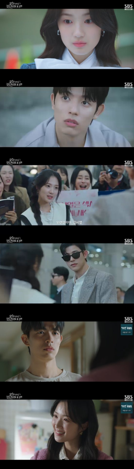 17일 방송된 SBS 금토드라마 '오늘부터 인간입니다만' 2회에서는 9년의 시간이 흘러 재회한 은호(김혜윤 분), 강시열(로몬)의 모습이 그려졌다.
