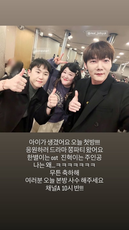 17일 이국주는 자신의 개인 채널에 "'아이가 생겼어요' 오늘 첫방! 응원하러 드라마 쫑파티 왔어요"라는 글과 함께 사진을 게재했다.