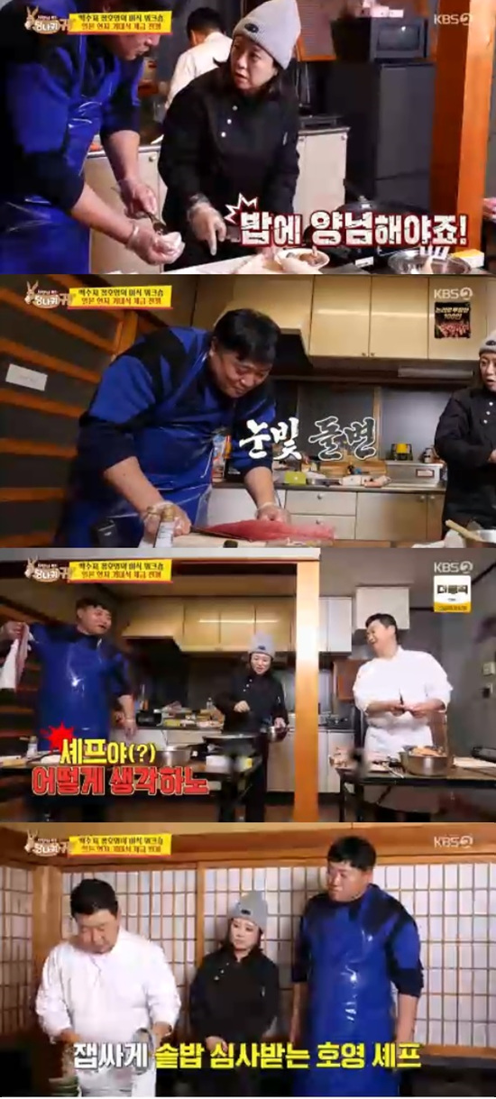 18일 방송된 KBS 2TV '사장님 귀는 당나귀 귀'에서는 정호영이 김숙, 양준혁을 상대로 요리대결을 펼치는 모습이 전파를 탔다.