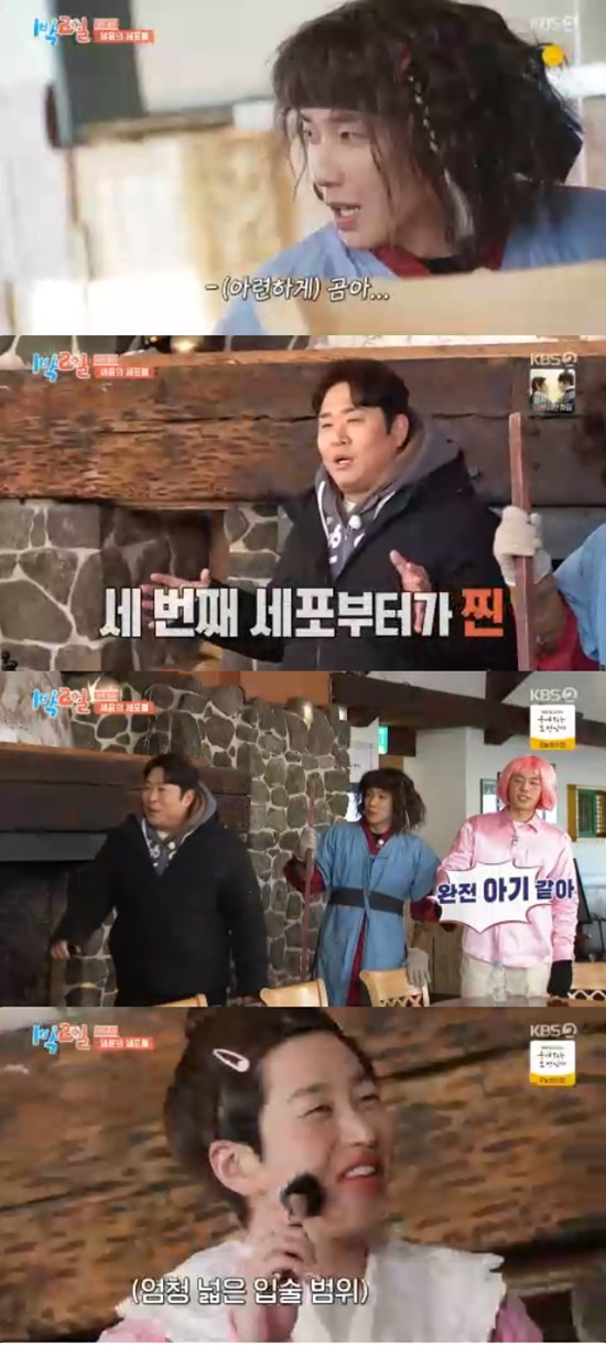 18일 방송된 KBS 2TV '1박 2일 시즌4'에서는 김종민, 문세윤, 이준, 딘딘, 유선호의 강원 평창 여행기가 전파를 탔다.