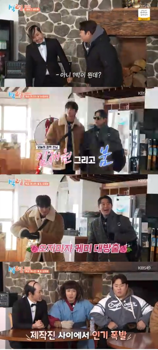 붐과 김재원은 지난해 연예대상이 끝나고 '1박 2일' 팀과 '가오정' 팀이 같은 식당에서 뒤풀이를 한 얘기를 꺼냈다.