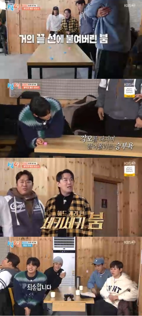 이날 멤버들은 붐 팀과 김재원 팀으로 나뉘어 송이 한 상을 걸고 주사위 칸 획득에 나섰다.
