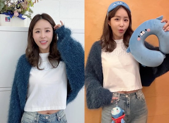 공개된 사진에는 니트 카디건과 크롭한 상의를 매치한 캐주얼한 스타일링을 한 신지의 모습이 담겼다. 편안한 분위기 속, 밝은 미소를 짓고 있는 신지는 크롭 상의를 입어 납작한 복부를 드러내 눈길을 끌었다.