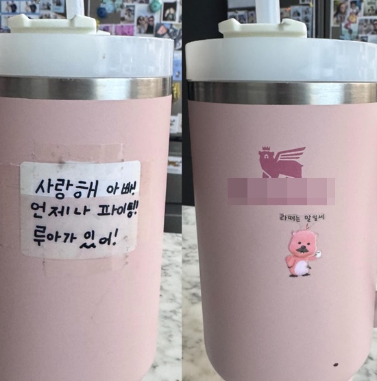 함께 공개한 사진에는 루아 양이 썼다는 '사랑해 아빠! 언제나 파이팅! 루아가 있어!'라는 문구가 담긴 텀블러가 담겨 훈훈함을 안겼다.