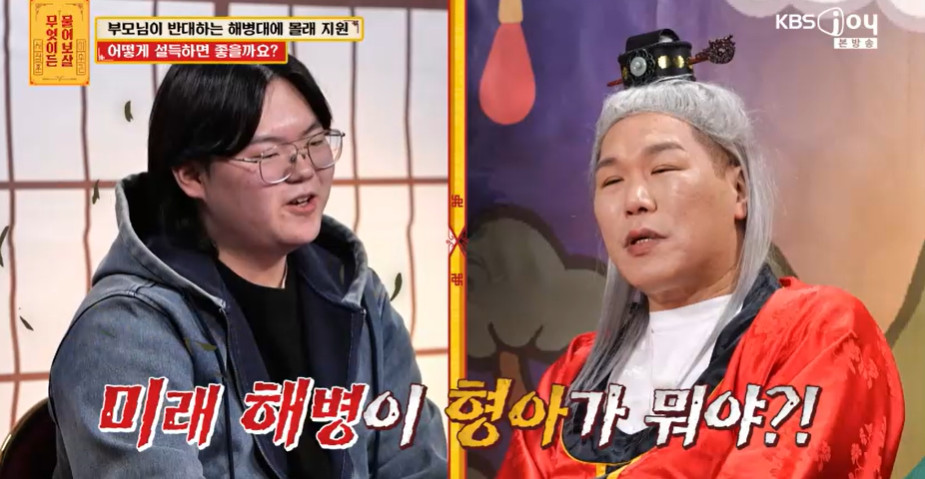 19일 방송된 KBS Joy '무엇이든 물어보살'에는 부모님의 반대를 무릅쓰고 해병대에 몰래 지원해 합격한 사연자의 이야기가 공개됐다.