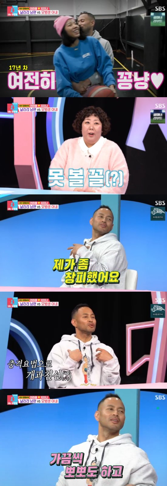 19일 방송된 SBS 예능 프로그램 '동상이몽2 - 너는 내 운명'에서는 전태풍♥지미나 부부의 일상이 공개됐다. 스페셜 게스트로는 신기루가 출연했다.