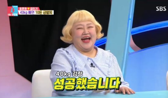 홍윤화는 "9개월만에 40kg 감량에 성공했다. 정말 열심히 뺐다"고 했고, 신기루는 "아이돌 해라"로 질투(?)해 웃음을 자아냈다.