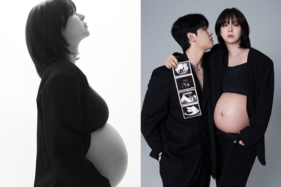 또 다른 흑백 화보에서는 우아하면서도 강인한 분위기를 연출했다. 볼록하게 부른 배를 감싸안은 채 깊은 눈빛으로 정면을 응시하거나, 초음파 사진을 들고 있는 모습에서 예비 부모로서의 설렘과 진심이 묻어난다.