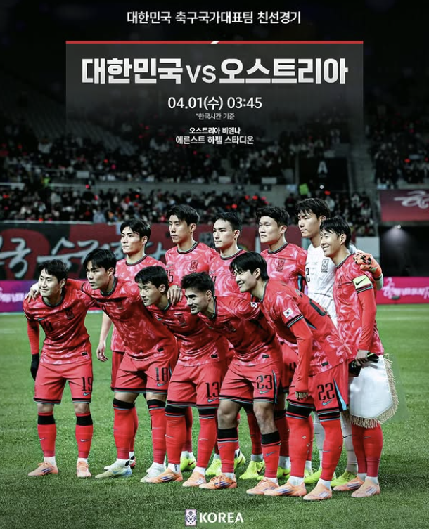 홍명보 감독이 이끄는 축구대표팀은 오는 4월 1일(한국시간) 오전 3시 45분 오스트리아 비엔나의 에른스트 하펠 스타디온에서 오스트리아와 A매치를 치를 예정이다. 양국은 사상 처음으로 남자 A대표팀 경기를 치르게 됐다.