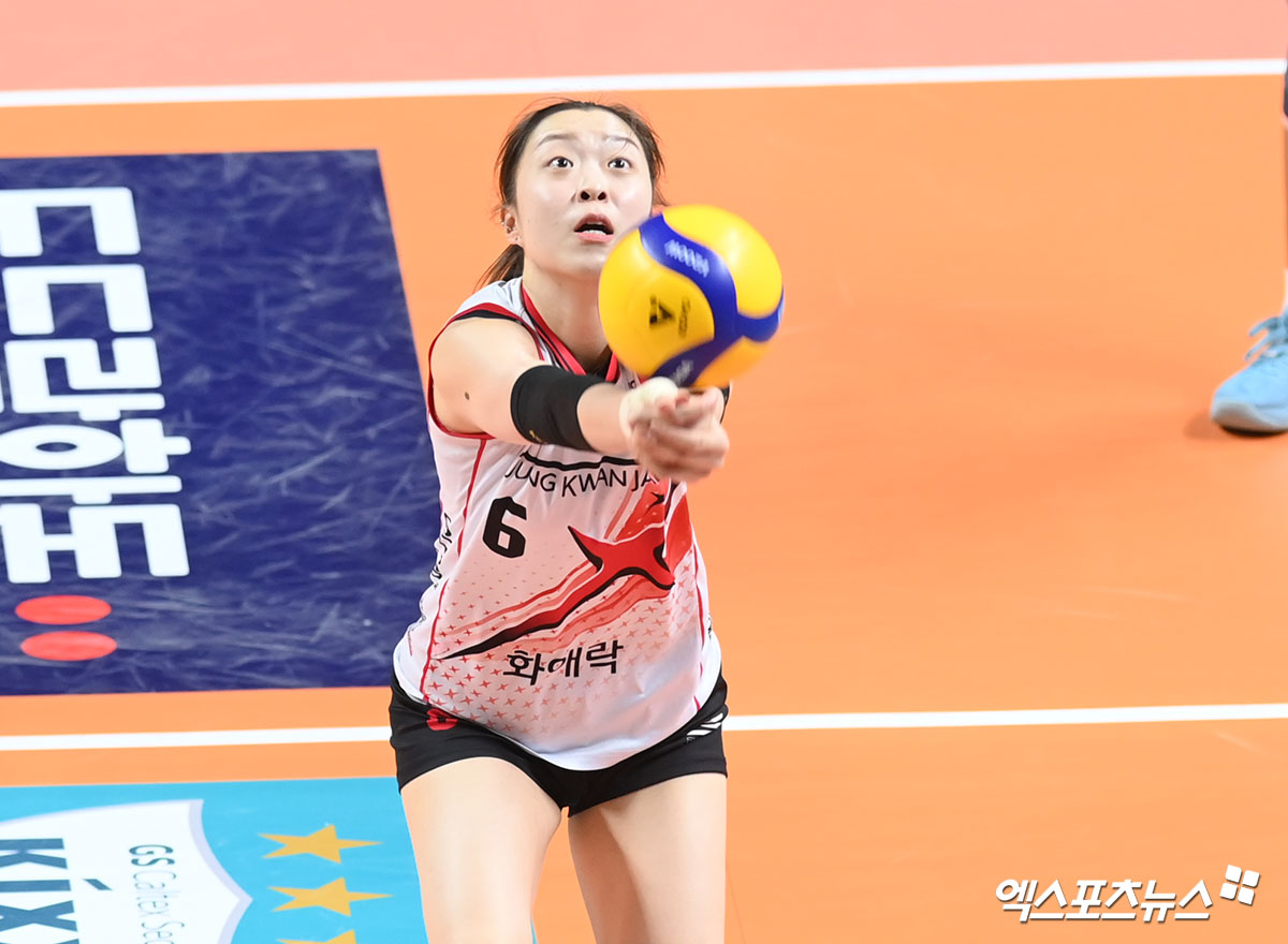 (엑스포츠뉴스 장충, 고아라 기자) 20일 오후 서울 장충체육관에서 열린 '진에어 2025-2026 V-리그' GS칼텍스와 정관장의 경기, GS칼텍스가 세트스코어 3:0(25-19, 25-22, 25-14) 셧아웃 승리를 거뒀다.