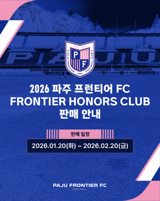 한편, 파주 프런티어 FC는 일반 팬들을 위한 2026 시즌권도 2026명 한정으로 판매 중이다. 데일리 티켓 대비 40% 할인된 가격에 NOL티켓에서 구매할 수 있다.