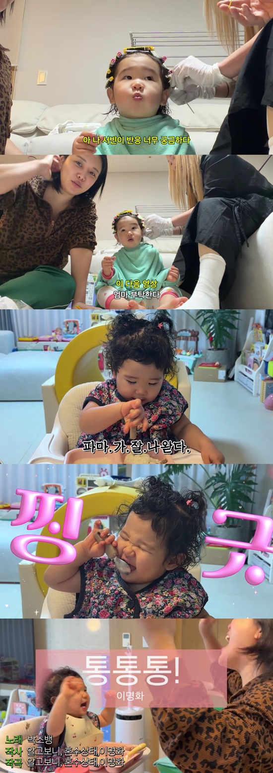 랄랄은 "인생 파마 대성공이다. 파마가 뽀글뽀글 잘 나왔다"며 뽀글머리 파마를 한 딸 서빈을 보며 기뻐했다.