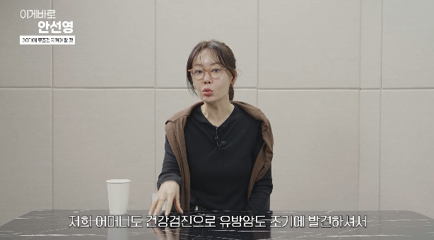 이어 안선영은 "매년 나라에서 해 주는 건강검진 꼭 받아라. 저희 어머니도 건강검진으로 유방암 초기에 발견하셔서 5년 동안 항암하시고 힘든 과정 다 함께했다. 그때 엄마의 육신을 지켜 준 건 안선영 딸 하나였지만, 병원비를 대 준 건 보험일 거다"라고 밝혔다.