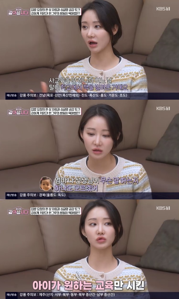 한그루는 "아이들이 귀가하면 친구들과 놀고 싶은데, 학원 가는 친구가 많으니까 (학원 안 다니는 쌍둥이들은) 놀 친구가 없다"고 말문을 열었다.