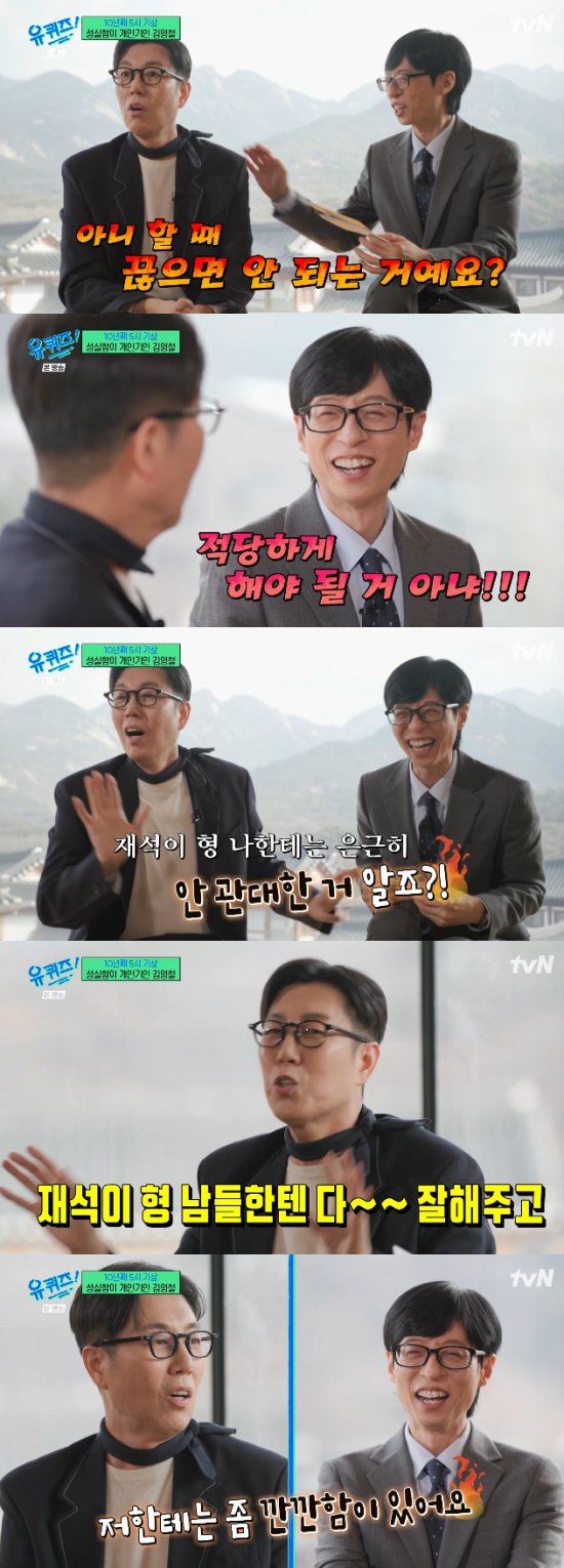 (엑스포츠뉴스 오수정 기자) '유퀴즈'에서 김영철이 유재석에게 약간의 서운함을 드러내 웃음을 자아냈다.