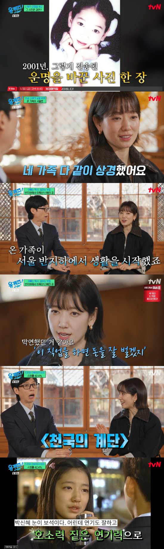 (엑스포츠뉴스 오수정 기자) '유퀴즈'에서 박신혜가 어린 시절을 회상했다.