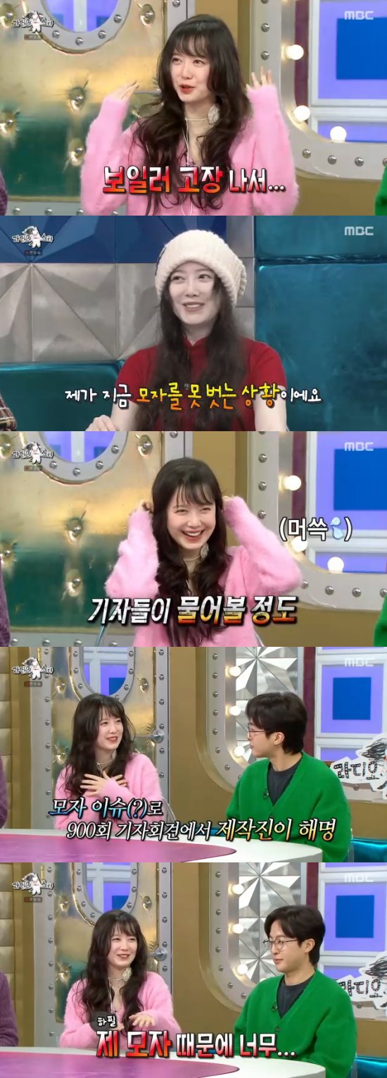이날 방송에서 구혜선은 지난번 '라디오스타'에 출연했을 당시에 모자 때문에 화제의 중심에 섰던 것을 회상했다. 김구라는 "그 때가 '라스' 900회 때였는데, 기자회견 때 구혜선 모자와 관련된 질문이 나올 정도로 화제였다"면서 웃었다.